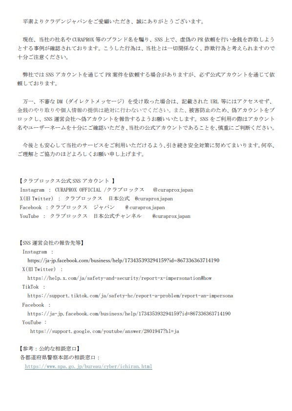 【重要なお知らせ】当社をかたるなりすましPR案件依頼にご注意ください